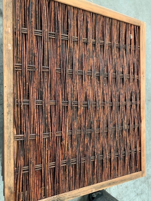 Dette smukke hegn er flettet af kraftige pilestave og indrammet i en stabil træramme, der giver både styrke og et elegant, naturligt look.