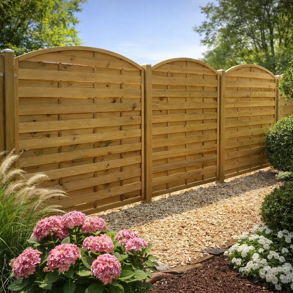 Med sin kraftige ramme, trykimprægnerede overflade og klassiske bue passer hegnet perfekt til både moderne og traditionelle haver.