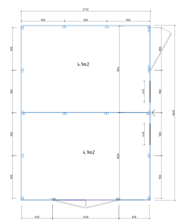 Sokkelmål: 270 × 370 × 240 cm (B × D × H)