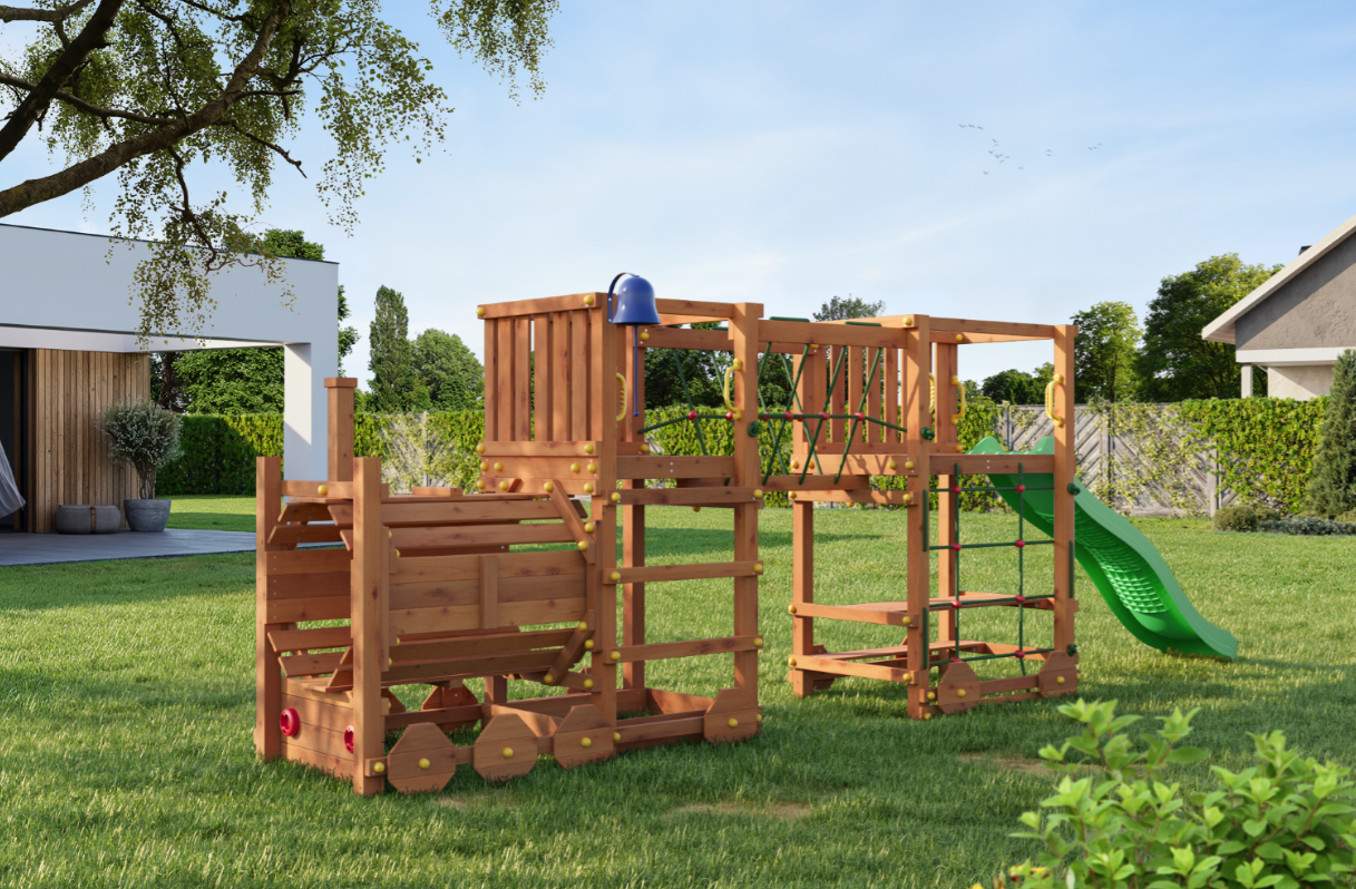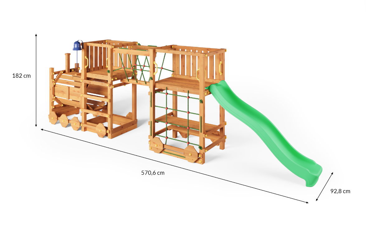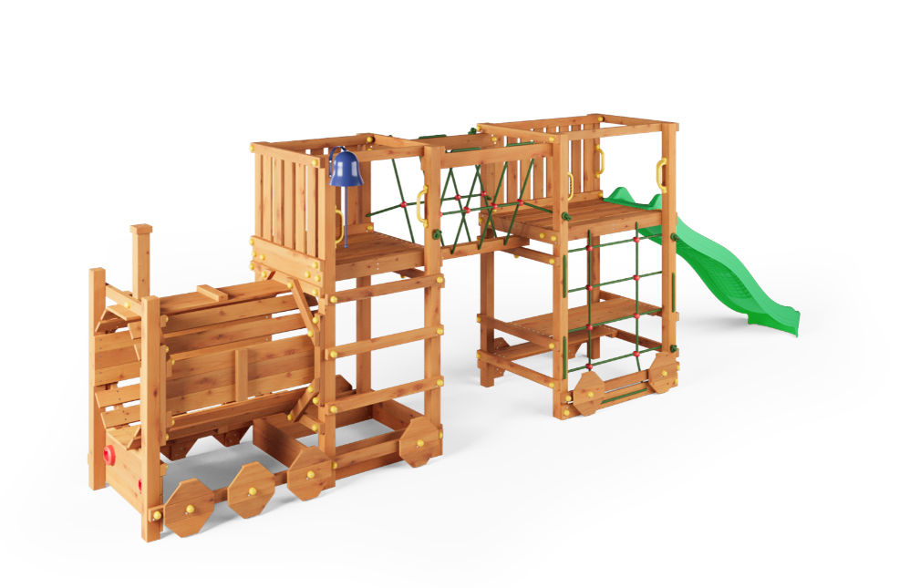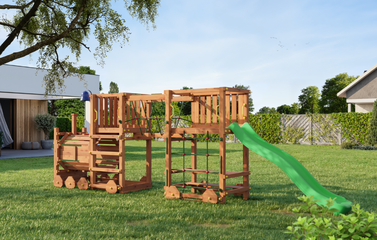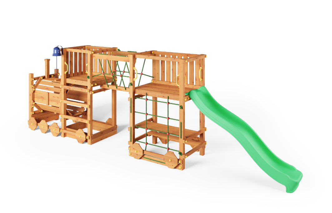 Etabler et alsidigt aktivitetsområde i haven med Loco Express – et lokomotivformet legesystem udviklet til både fysisk udfoldelse og fantasifuld leg. Konstruktionen kombinerer flere legefunktioner i én samlet løsning og er dimensioneret til aktiv brug af flere børn ad gangen.