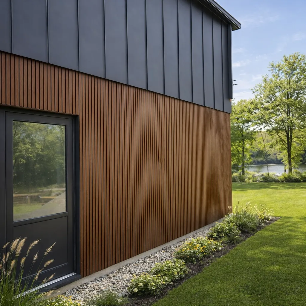 Lefkas kompositbeklædning giver dig et flot, ensartet resultat i enten mørk antracit eller varm redwood – perfekt til både nye og eksisterende bygninger.