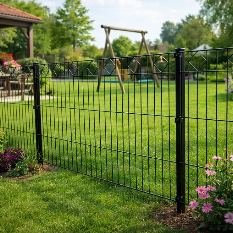 Hegnet er udført i kraftig 5 mm tråd, som først er galvaniseret og derefter pulverlakeret i farven sort (RAL 9005) for optimal holdbarhed. Den smukke “◊”-dekoration i toppen giver et dekorativt og eksklusivt præg, som gør hegnet til et æstetisk element i haven – ikke blot en afskærmning.
