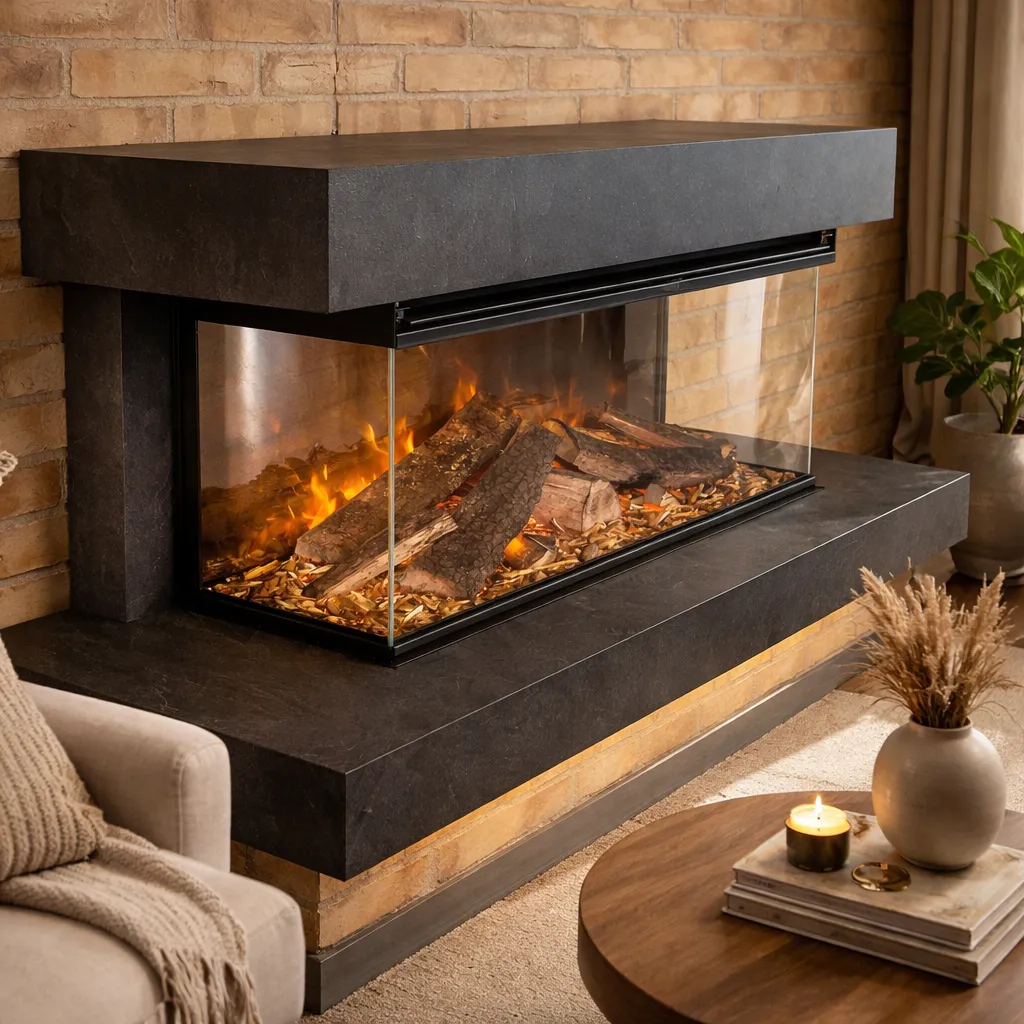 Perfekt til både stue, soveværelse og moderne opholdsrum – hvor du ønsker hygge, lys og varme uden skorsten eller røg.