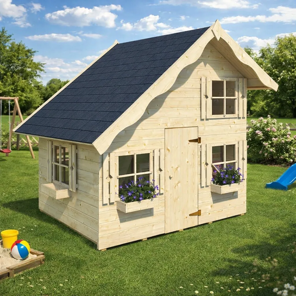 Anna legehuset er designet til både små og store børn, der elsker at lege, bygge huler og skabe deres egne små verdener. Med to etager, hems og fire vinduer giver huset masser af plads, lys og muligheder for kreativ leg.